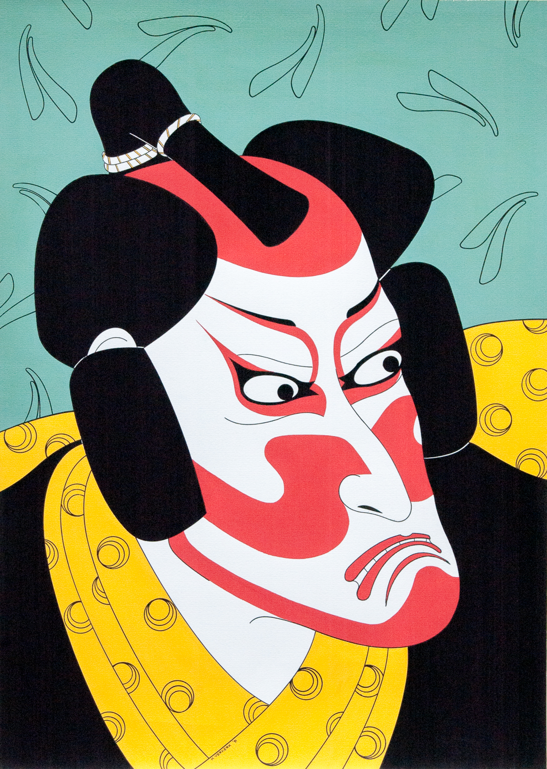 Portret 2 van een Japanse toneelspeler. Afm gouache 70 x 50 cm. Prijs € 400,-