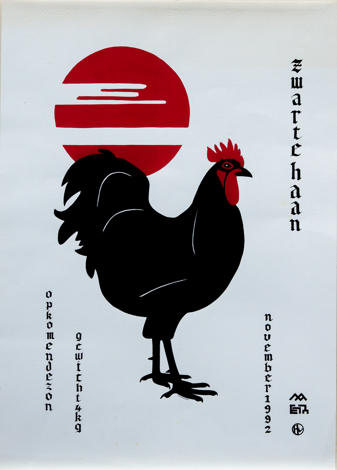 De teksten van deze gouache zijn verticaal te lezen. Lijkt op een Japanse prent. Afm.gouache : 70 x 50 cm prijs € 400,-
